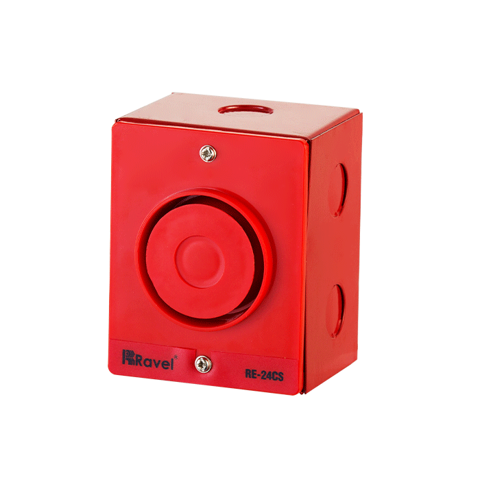 The RE-24CS sounders are engineered to deliver both primary and secondary alerts in security systems. Featuring piezoelectric technology, they come in a streamlined design that can be easily installed on flush or ceiling mounts, with or without a back box. They produce a loud 100dB sound while maintaining low power usage. Constructed from red ABS plastic, these sounders are compatible with a variety of fire alarm setups.
